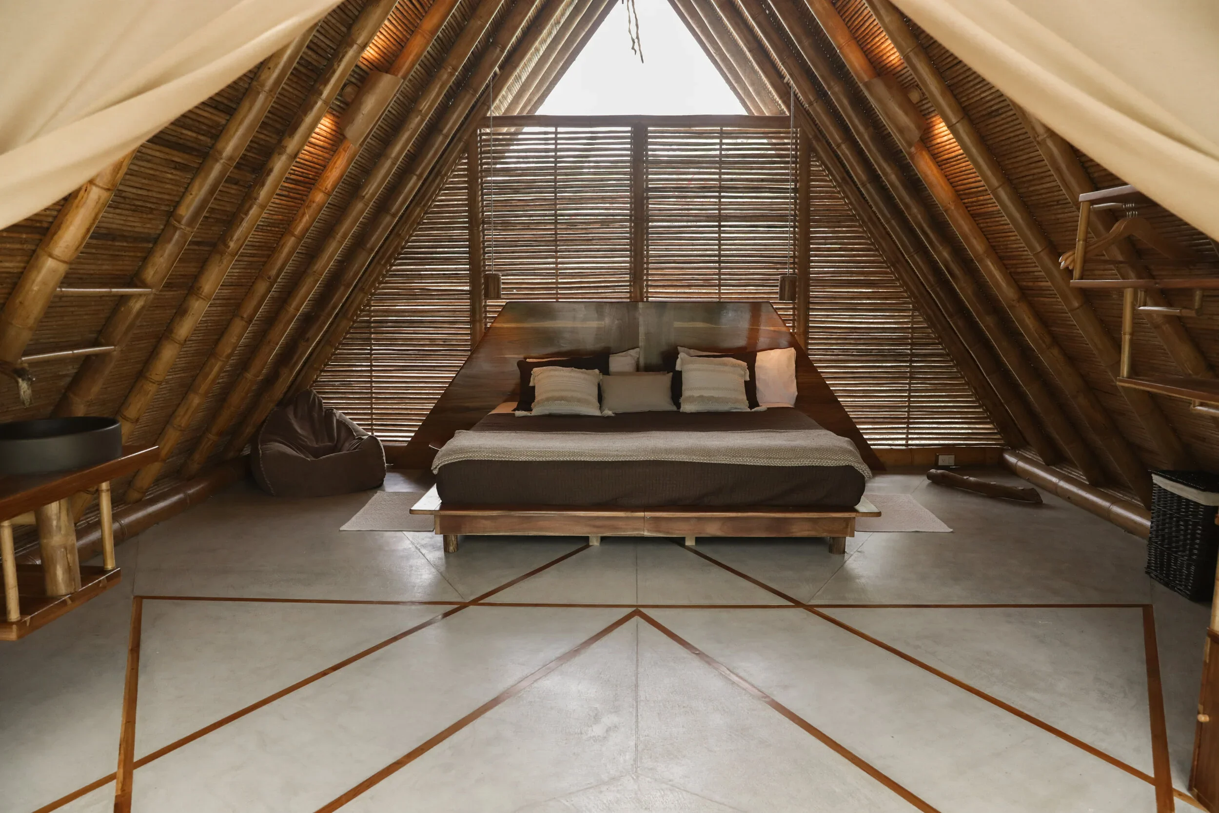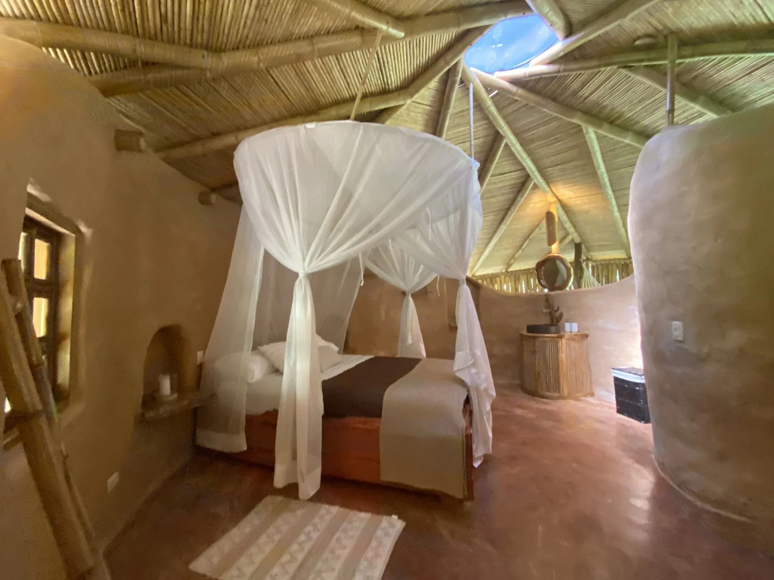 Earth Tambos are adobe structures made from red clay and bamboo from the land. The Earth walls and floors give the space a very grounding feeling and inspire a deep stillness. Intentionally designed using organic forms, materials, and textures to inspire the senses and connect to Nature.