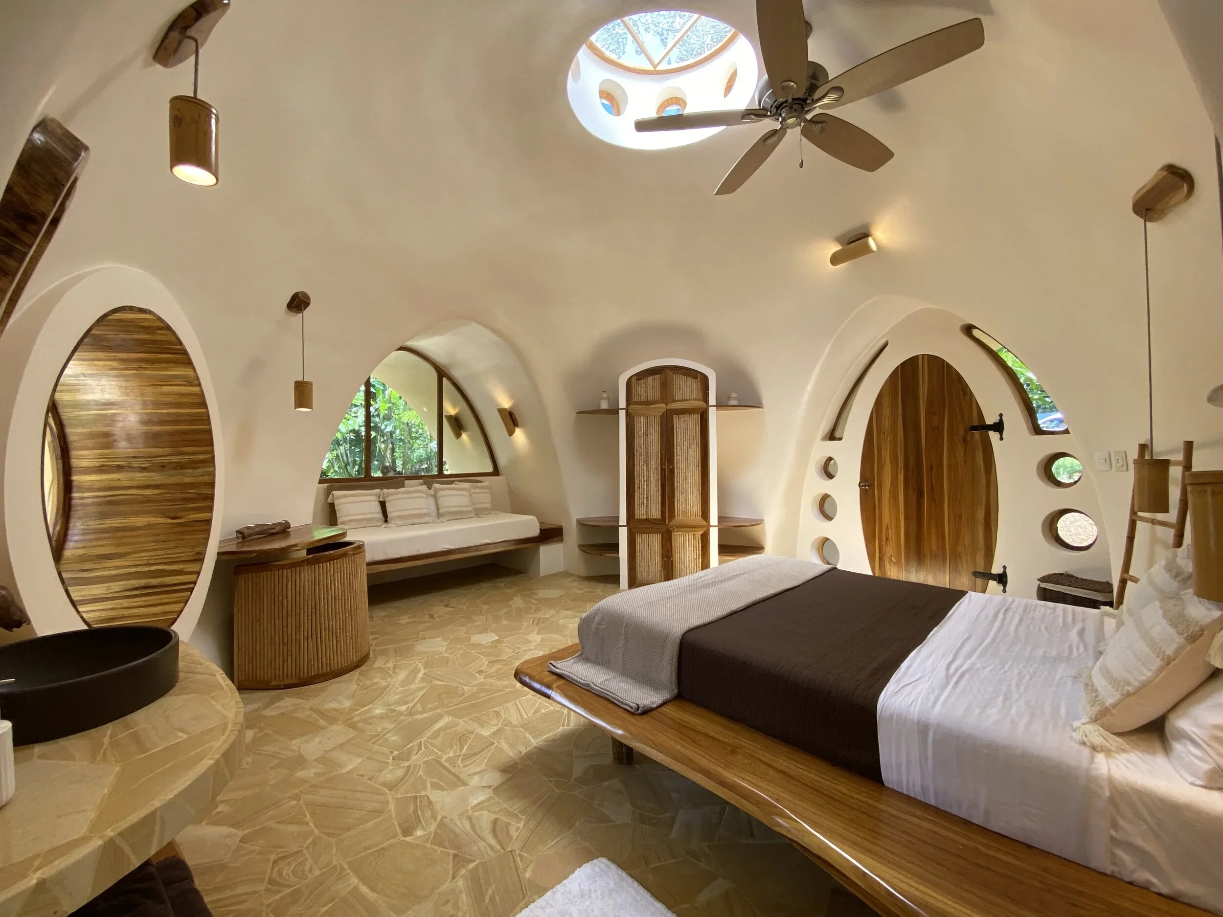 To stay in a Gaia Dome is to rest in a sphere. Nestled in tropical foliage where butterflies and hummingbirds delight. Illuminated by moonbeams and first morn’s light, the Gaia Domes are cozy, cocoon-like, dwellings.